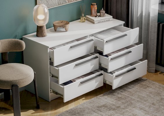 Комод Берген с выдвижными ящиками — отличный вариант для небольшой комнаты или прихожей.