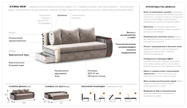 Диван Атика (Империал) - за 69 368 руб. в Воронеже. Купите на сайте mebelmarket-voronezh.ru или по телефону 8(800)505-30-63 уже сегодня! Уточнить наличие, комплектацию, актуальную цену можно бесплатно у менеджера ежедневно. Закажите Диван Атика (Империал) до конца акции! Доступна покупка в кредит, рассрочку. Доставим со склада или на заказ.