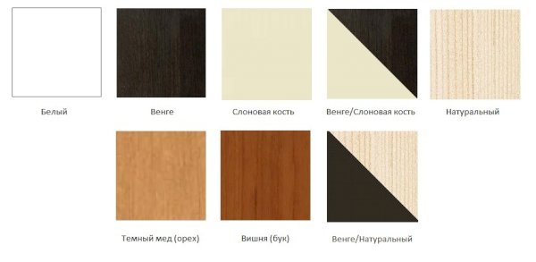 Цвета: Венге-Натура, Белый, Венге, Венге-Слоновая кость, Бук, Натура, Темный мед, Слоновая кость