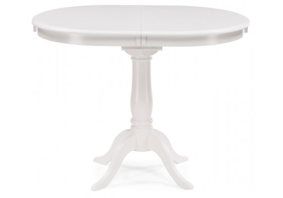 Ножки стола также выполнены из массива гевеи, обеспечивая устойчивость и надежность. Столешница изготовлена из МДФ с шпоном, что придает ей элегантный и изысканный внешний вид. Длина стола в разложенном виде 129 см, что позволяет комфортно разместить до 4 человек за обеденным столом.