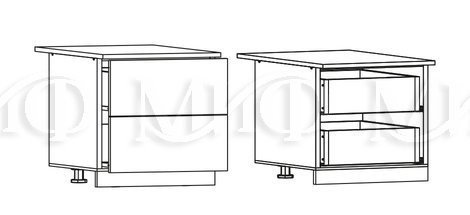 ШН2Я800 Шкаф нижний с 2 ящиками Черный глянец