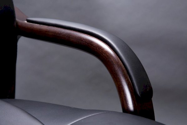 Кресло с высокой спинкой, с подлокотниками прямоугольной замкнутой формы с мягкими накладками обитыми в цвет кресла