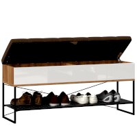 • Скамья установлена на опорный металлический каркас со стационарной металлической полкой для обуви. (полка с перфорацией)